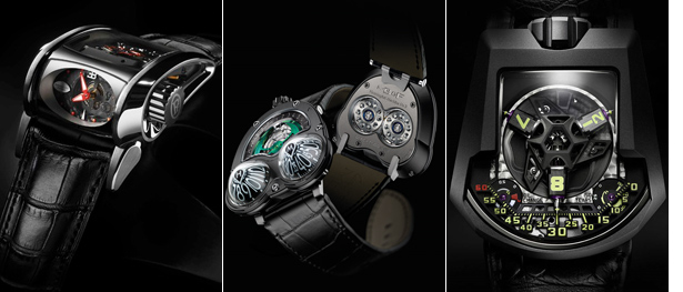 Η εταιρεία Urwerk δε φτιάχνει συνηθισμένα ρολόγια. Το UR-203, από μαύρη πλατίνα, δείχνει την ώρα με ένα τριαξονικό περίπλοκο σύστημα, ενώ έχει ακόμα και ένδειξη αλλαγής λαδιών ή του χρόνου που βρίσκεται σε λειτουργία - φτάνει μέχρι τα 150 χρόνια.