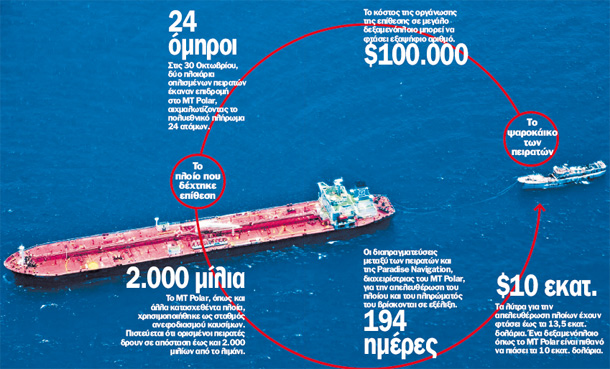 Βεβαίως, οι ρομαντικές αυτές ομολογίες είναι πέρα για πέρα ανακριβείς. Το Διεθνές Ναυτιλιακό Γραφείο (1MB), ένας μη κερδοσκοπικός οργανισμός για το παγκόσμιο εμπόριο με έδρα το Λονδίνο, εκτιμά ότι 150 έως 300 εκατ. δολάρια που καταβλήθηκαν ως λύτρα πέρυσι δόθηκαν για την απελευθέρωση πληρωμάτων πλοίων μεταφοράς χύδην φορτίων ή εμπορευματοκιβωτίων, καθώς και άλλων εμπορικών πλοίων ελαφρά φυλασσόμενου φορτίου, ενώ μέρος του ποσού δόθηκε και για την απελευθέρωση ιδιωτικών θαλαμηγών. Η πειρατεία είναι μεν έγκλημα, αλλά πάνω απ΄ όλα είναι μια επιχείρηση, που σήμερα, μάλιστα, ακμάζει.